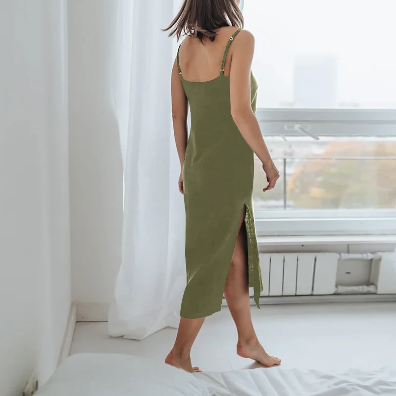 Muslin 100% Cotton Gauze Women'S Dress Sexy Adjustable Strap Sleeveless Open Side Maix Long Dress Summer Comfortable Outfit